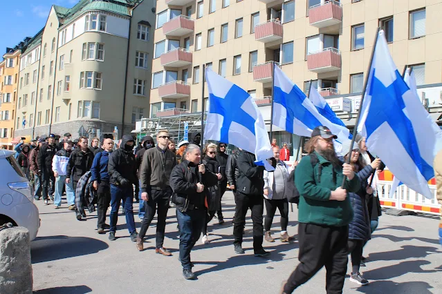Putinismin natsittelijat Ukrainaa ja Suomea vastaan, kadunvarsisolvaajien isovenäläinen kommunismi tausta, Sinimusta Liike vappukulkue, Valkoinen Vappukulkue Tampere, Valkoisen työväenliikkeen vappukulkue, Kirkkokadulta Hallituskadulle, Isänmaan Asialla, Ei kommunismille, Ei putinisimille, ei isovenäläisille kansanmurhille, muistetaan totuus kommarivalheista, 100 miljoonaa kommunismin uhria, Slava Ukraini, Sinimusta Liike r.p, vahvistettu virallinen puolue, kuvaaja Seppo Lehto